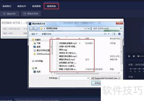 2、 打开后可见四个功能各异的按钮,点击音频转换,在弹出窗口中添加所需转换的文件即可开始操作。