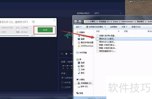 5、 转换完成后,点击打开即可查看音频文件。
