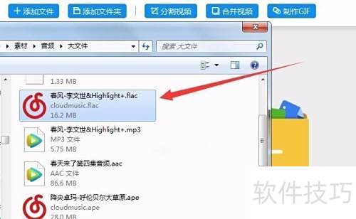 2、 安装好视频转换器后,启动软件,点击顶部的添加文件按钮,在弹出的窗口中选中已下载的flac文件,确认打开,即可完成文件导入。