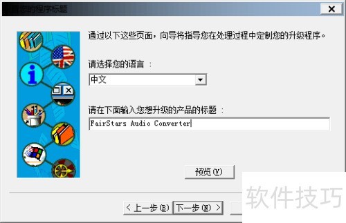 9、 这是Patch Maker的主界面。文件选项卡无需额外设置,进入向导文字选项卡进行操作。该界面用于自定义补丁安装程序中的显示文字。在右侧页面区域选择不同项目后,可在下方双击对应文本条目进行编辑。修改完成后,可通过预览功能查看实际效果。界面中出现的Title属于宏标识,表示一段可统一替换的字符串。所有包含Title的位置均引用同一内容,且该内容支持自定义修改,便于统一调整标题文字。
