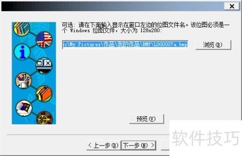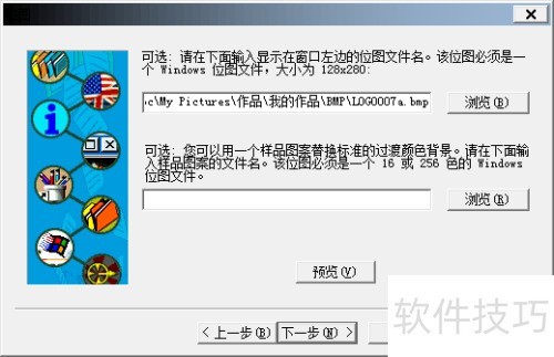 6、 若上一步选择小窗口模式,可设置窗口左侧LOGO;若选择全屏模式,则可同时设置左侧LOGO和背景图片。设置完成后,点击下一步继续操作。