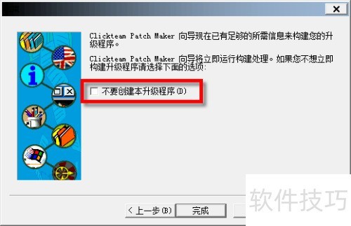 8、 向导已完成,还需进行其他设置,请勾选不要创建本升级程序。