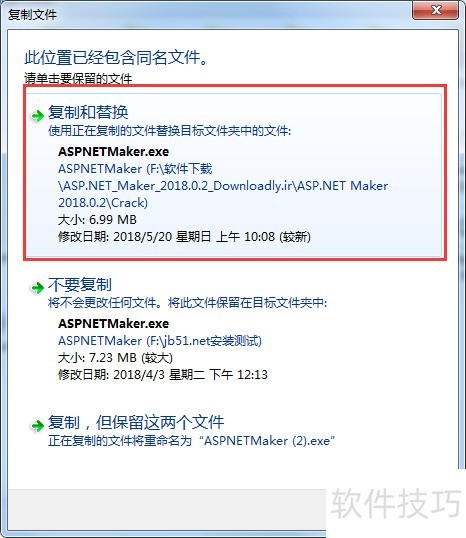 4、 将解压后Crack文件夹中的ASPNETMaker.exe复制到安装目录中,具体操作所示。