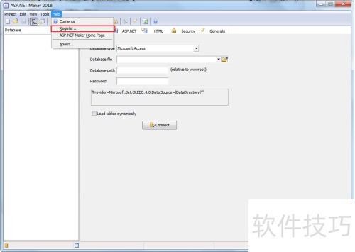 7、 启动ASP.NET Maker 2018,点击帮助菜单中的注册选项完成注册操作,具体步骤所示。