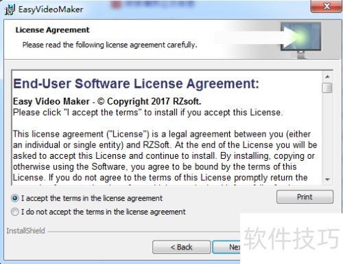 4、 阅读软件许可协议,勾选同意声明,点击下一步继续操作。