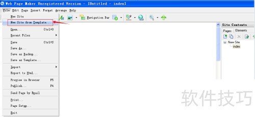 2、 在文件菜单中选择从模板新建站点