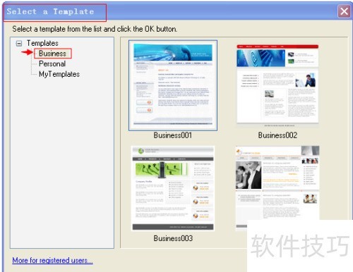 3、 弹出模板选择窗口,其中商业模板提供四种不同样式供挑选。
