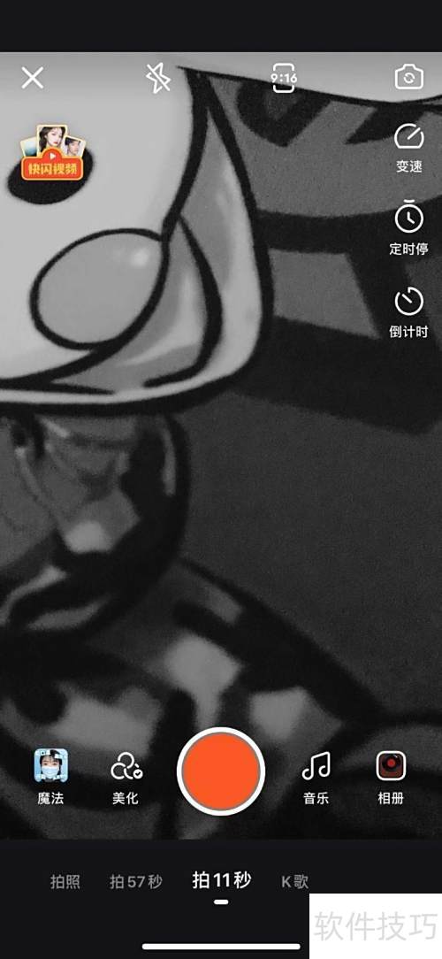 2、 打开手机,进入快手,启动直播界面。