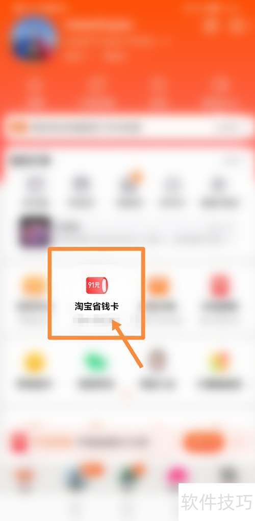 1、 打开淘宝主页,找到并点击省钱卡入口即可。