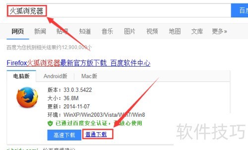 1、 为达成目标,需先通过百度搜索下载并安装火狐浏览器。
