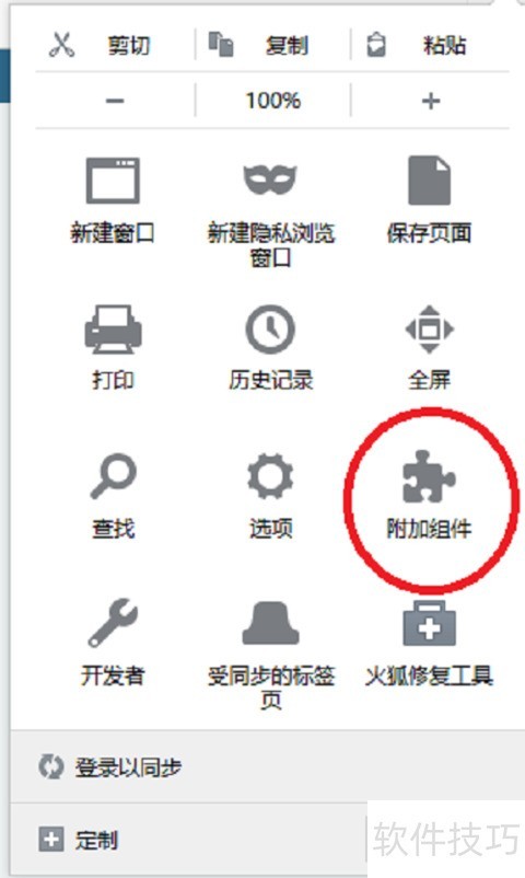 2、 打开页面右上角三条杠,点击后选择附加组件即可。