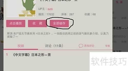 6、 在iOS中找到视频后,点击全部缓存即可。