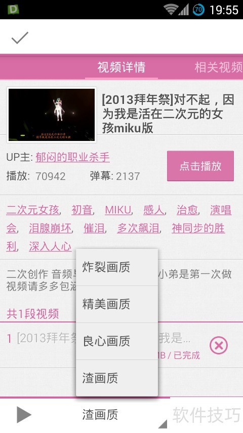 5、 第四种方法是通过降低画质来确保视频流畅播放。B站移动端支持视频缓存,缓存后可离线观看。下面介绍iOS与安卓系统各自的具体操作步骤。