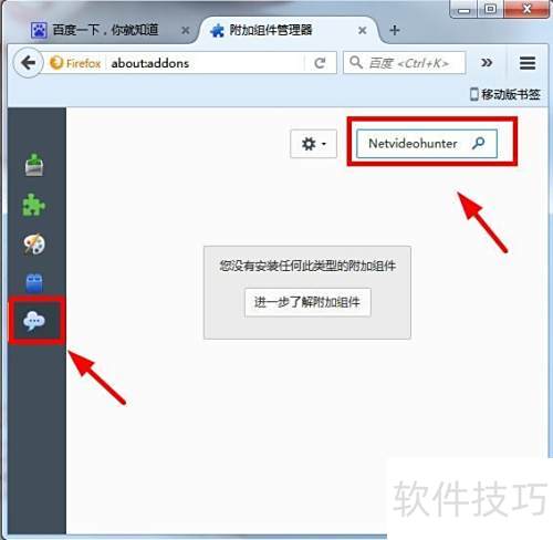 4、 点击搜索后会出现多个插件,找到NetVideoHunter视频下载工具,选择并完成安装即可。