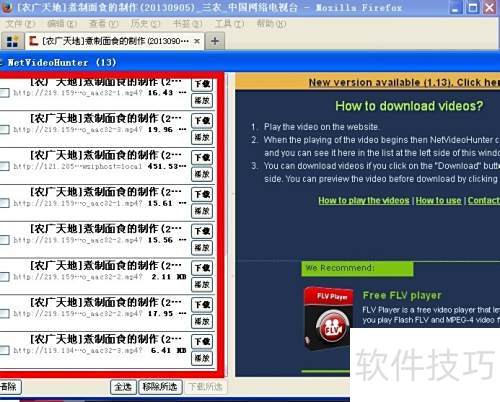 10、 筛选并去除重复内容后,选定所需视频片段的下载链接,点击下载所选选项,Firefox浏览器便会自动开始下载。待下载任务完成后,即可成功获取央视网的在线视频内容,用户只需进入Firefox的下载管理界面查看和确认下载结果即可完成整个过程。