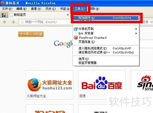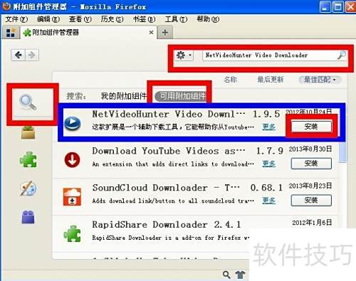 2、 部分火狐浏览器版本内置了NetVideoHunter视频下载工具,但大多数版本并未集成此功能,因此在下载视频前需手动安装该组件。可进入Firefox浏览器的工具菜单,点击其中的附加组件选项,查找并添加相应的下载插件以实现视频保存功能。