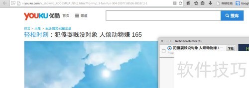 6、 进入优酷网站,随意选择一个视频并开始播放,随后启动netvideohunter工具,此时可看到其界面出现在右下角,通过该区域即可直接下载正在播放的视频内容,操作简便快捷。