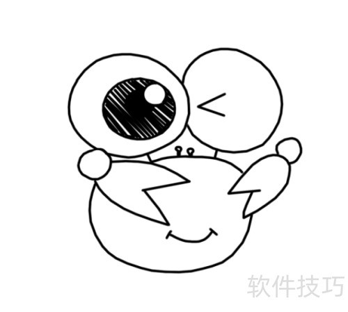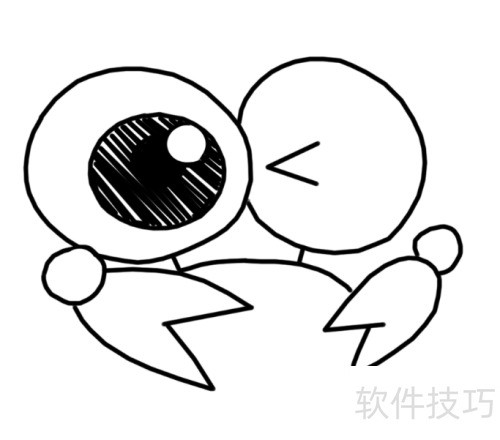 4、 为大眼螃蟹添画圆润腹部。