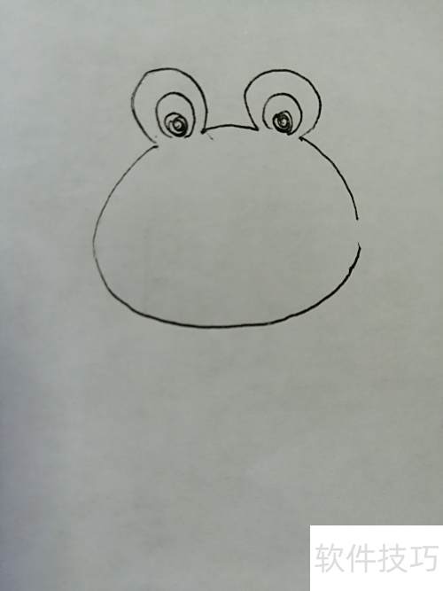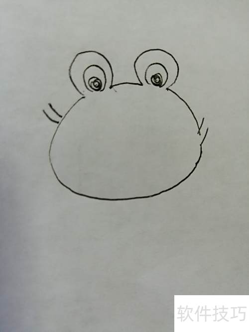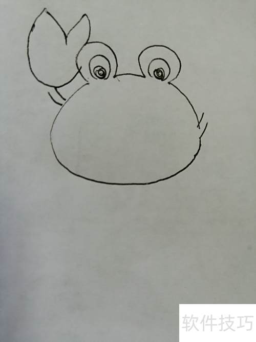2、 在小螃蟹大眼睛下方画一个椭圆形,作为它的身体部分。