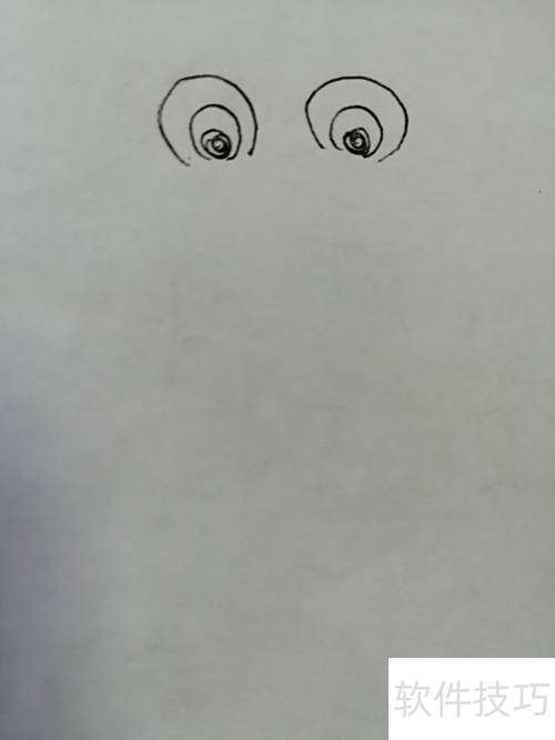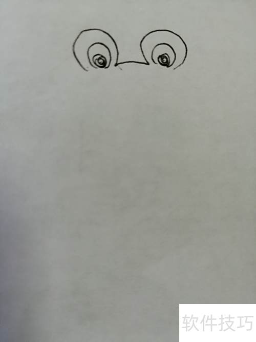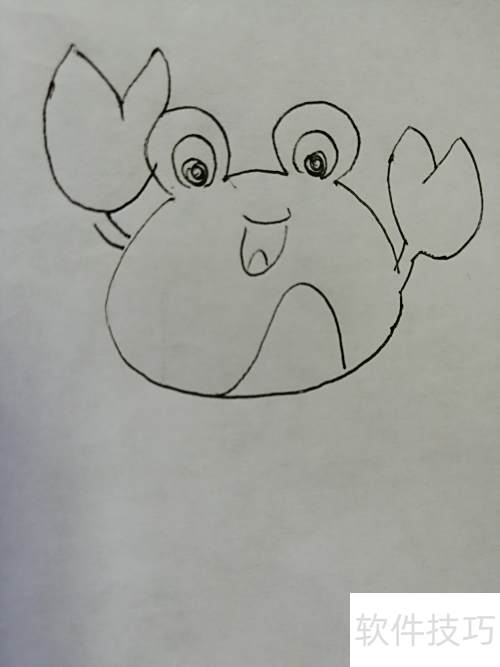 1、 先画出小螃蟹那对又大又黑的圆眼睛。