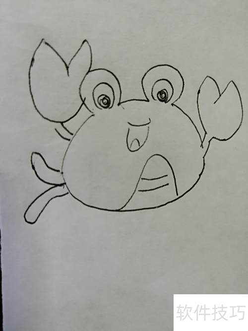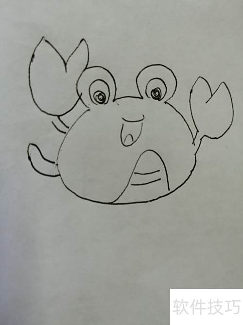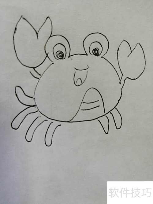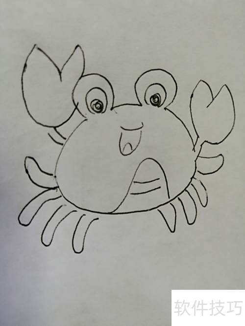 7、 第七步,画出小螃蟹针绵剩余的四条腿,一只可爱的简笔画小螃蟹便完成了。
