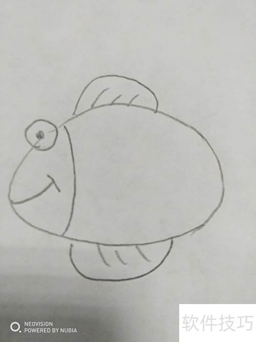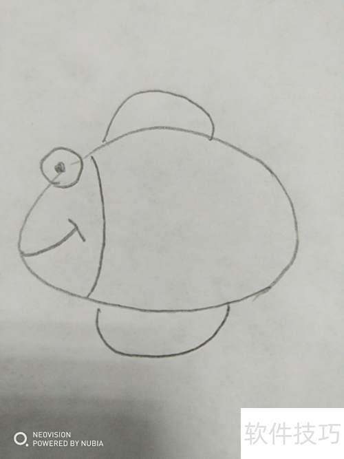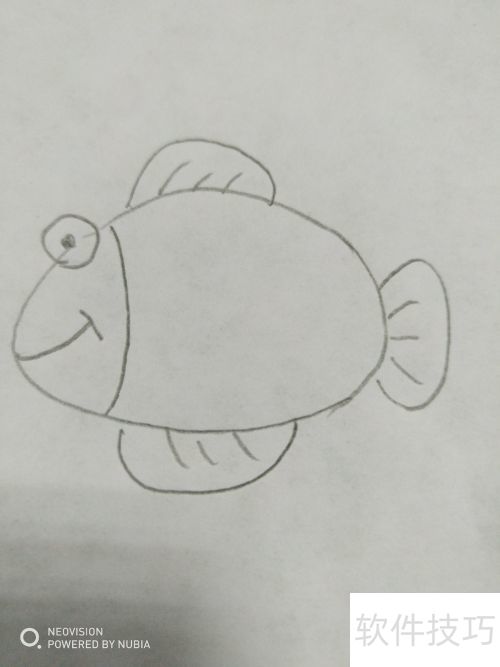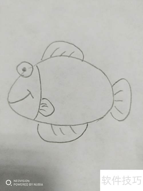 6、 第六步,补全鱼身与尾部的鳍状结构。