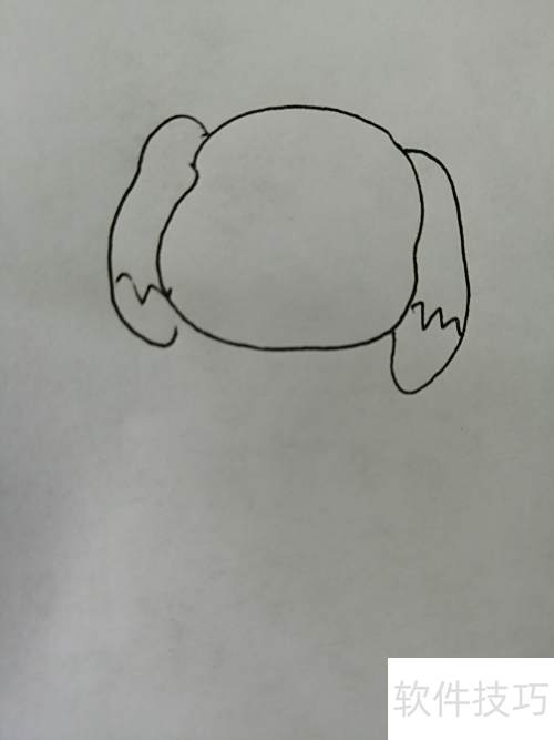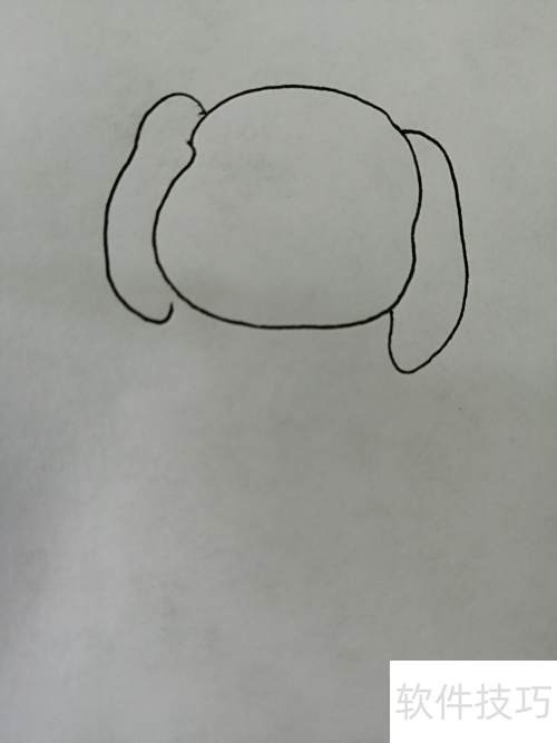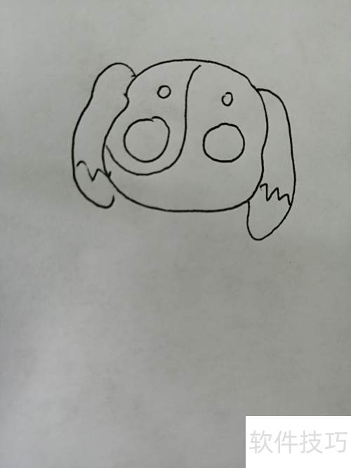 2、 画出大眼睛小狗那对萌萌的耳朵。