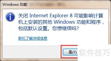 7、 提示关闭IE8可能影响系统,建议确认操作,直接点击确定继续即可。