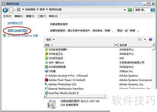 6、 点击查看已安装的更新选项