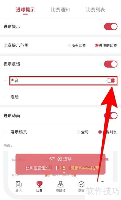 赛酷体育开启声音提示