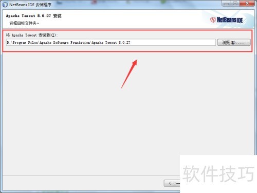 8、 单击下一步进入Tomcat服务器安装路径配置界面,此步骤仅在自定义运行时选项中勾选后出现。