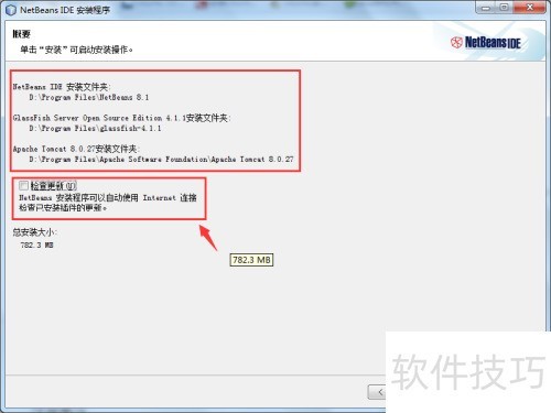9、 点击下一步确认路径,并取消勾选检查更新选项。