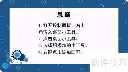 1、 进入控制面板,在右上角搜索框输入桌面小工具。