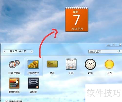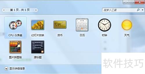 4、 Windows 7系统内置多种实用小工具,如CPU监控、幻灯片放映、货币换算、日历、时钟、天气预报、图片轮播及源标题显示等。