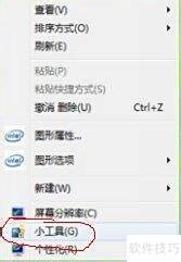 1、 在桌面空白处右键点击,选择小工具并左键确认。