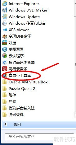 3、 可在开始菜单的所有程序中点击桌面小工具库启动。