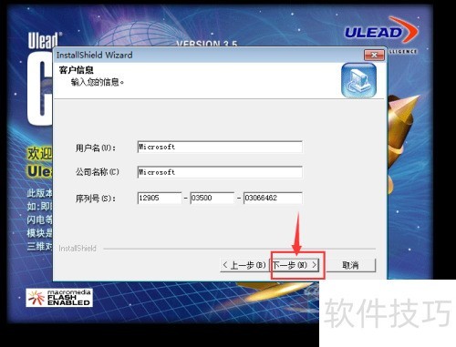 6、 输入序列号后点击下一步。
