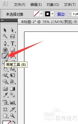1、 启动AI软件,新建文件,左侧工具栏选择画笔工具,快捷键为B。