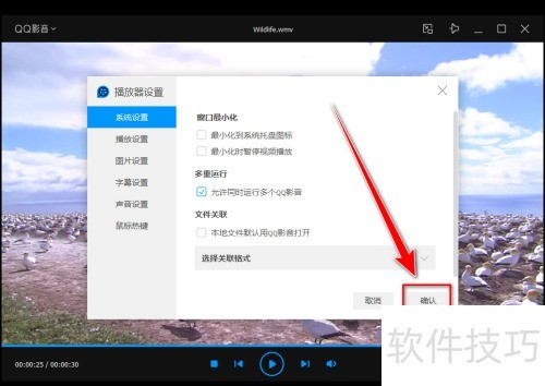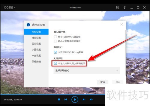 4、 在系统设置中,取消勾选本地文件默认使用QQ影音打开选项。