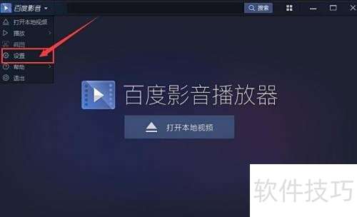 2、 打开软件后,点击左上角百度影音按钮,在下拉菜单中选择设置选项即可进入设置界面。