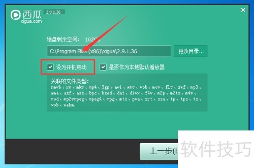 4、 所示,若不想开机自动启动,可取消勾选设为开机启动,然后点击下一步即可。