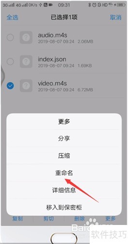 2、 打开文件夹,找到名为video的文件,长按后选择更多选项。