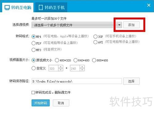 4、 进入转码界面,点击添加,选择需转换的视频文件。
