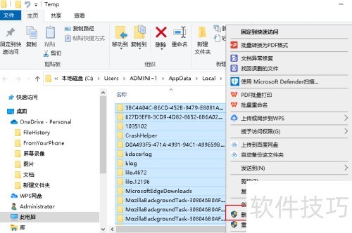 3、 选中Temp文件夹内所有文件,右键选择删除即可。