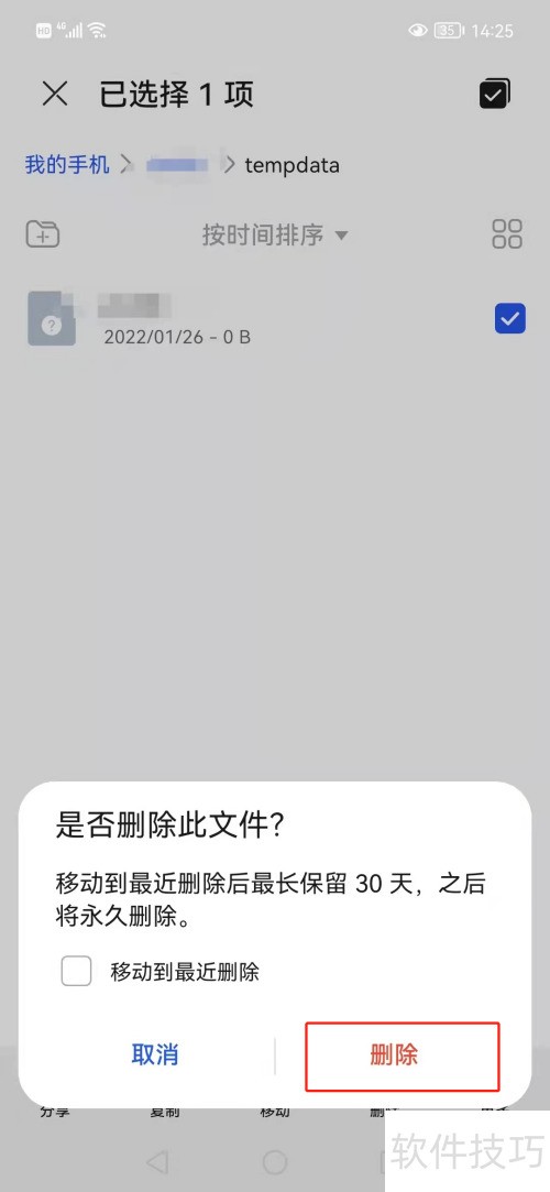 4、 点击弹窗中的删除按钮即可移除temp文件