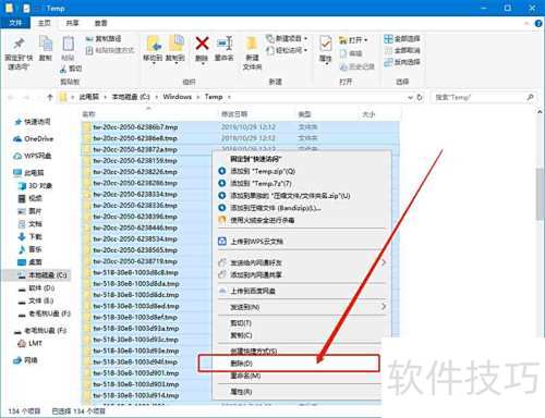 3、 打开temp文件夹,全选其中文件并删除即可完成操作。