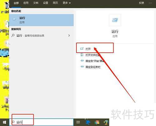 1、 在桌面左下角搜索框输入运行,点击打开即可。