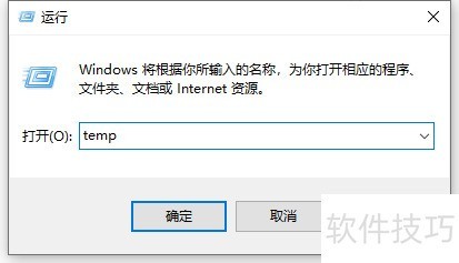 2、 按下Win加R键打开运行窗口,输入temp后确认即可。