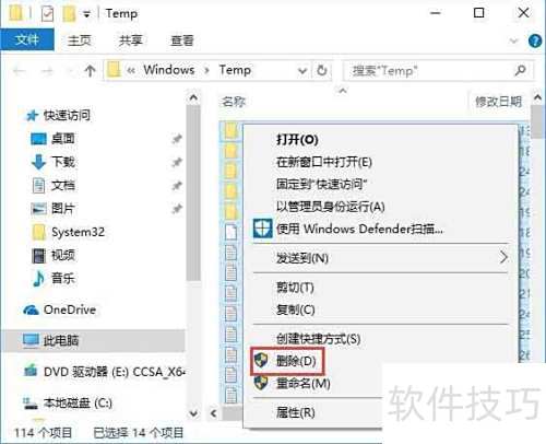 3、 打开temp文件夹,全选其中文件并删除即可完成操作。