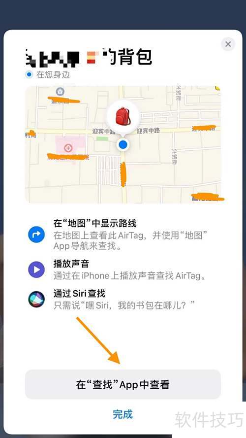 6、 所示,可查看AirTag的位置信息,并执行相关附加操作。